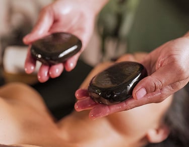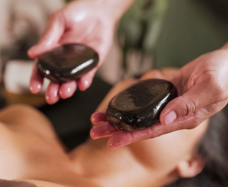 Massagem relaxante com pedras quentes